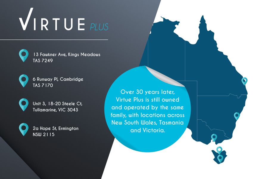 Virtue Plus began as a small family business in 1990, based in Launceston, Tasmania. Now over 30 years later, it is still owned and operated by the same family, with locations across Tasmania, Victoria and New South Wales.