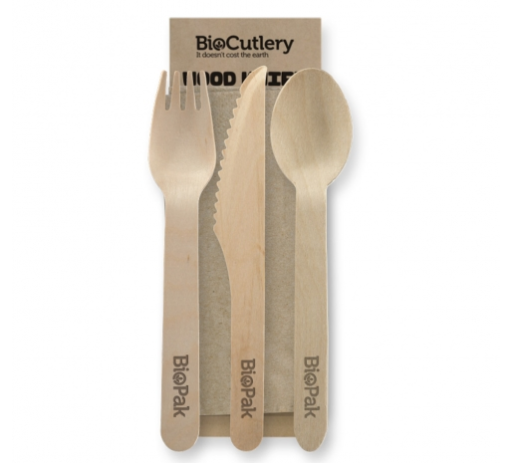 BIOPAK WOODEN 16CM *SPOON/KNIFE/FORK/NAP